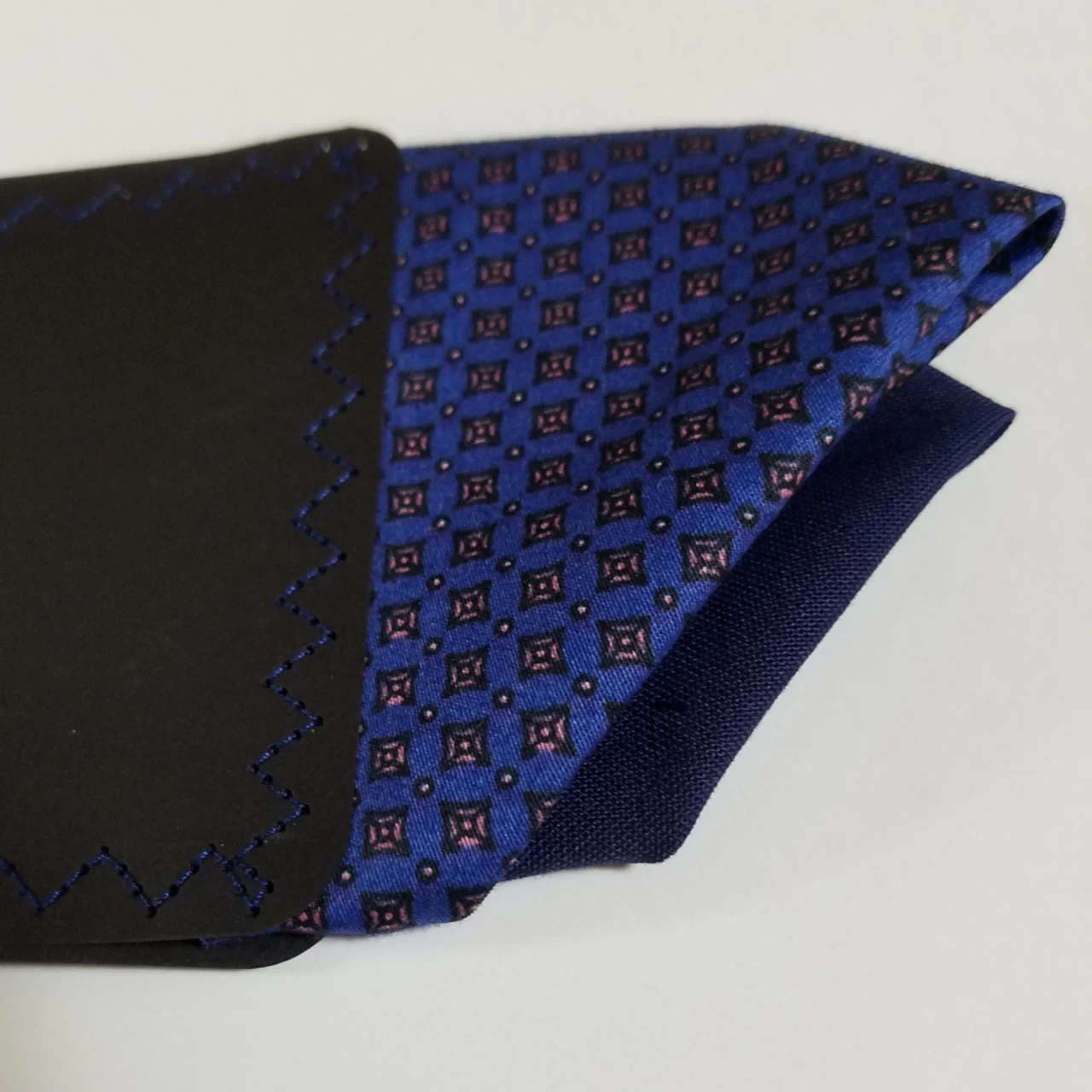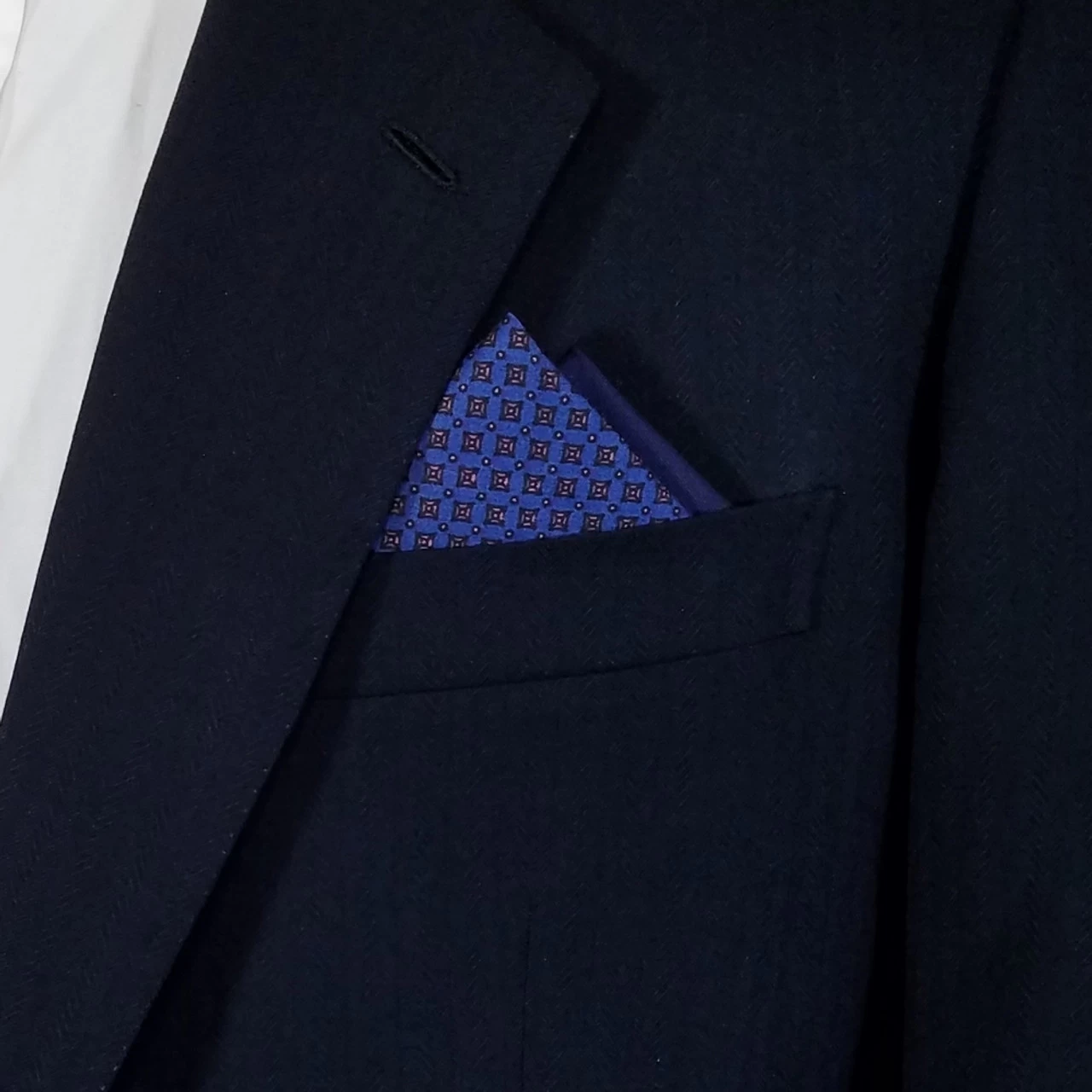 Dress up your suit or sport coat with a pre-folded pocket square. It’s easy to use and looks like a well placed pocket square. Just slip the insert into your breast pocket and adjust height to your taste. Trim bottom of card if you want less pocket square showing.
