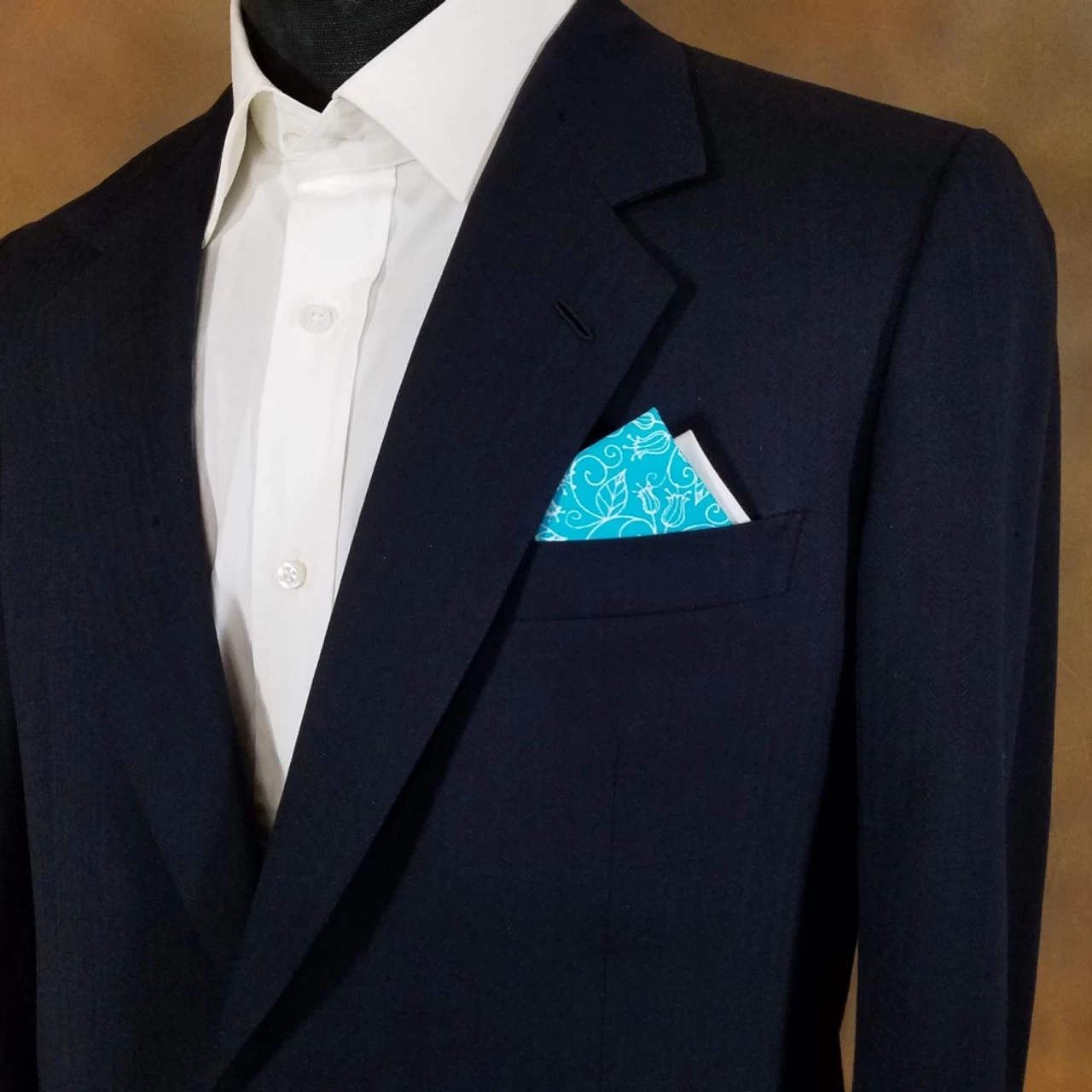 Dress up your suit or sport coat with a pre-folded pocket square. It’s easy to use and looks like a well placed pocket square. Just slip the insert into your breast pocket and adjust height to your taste. Trim bottom of card if you want less pocket square showing.