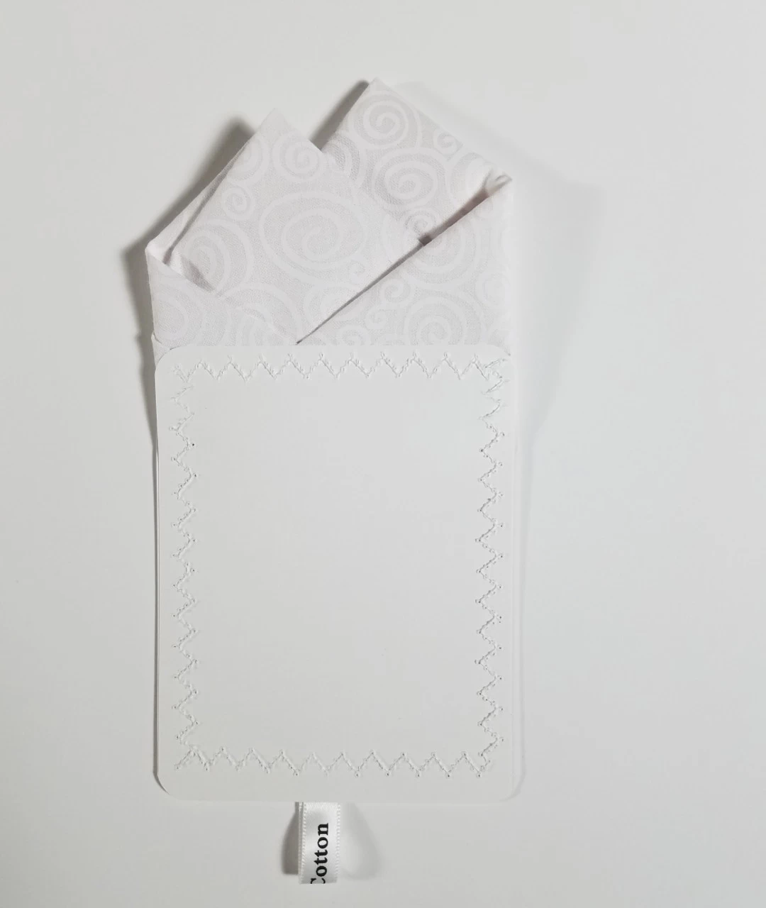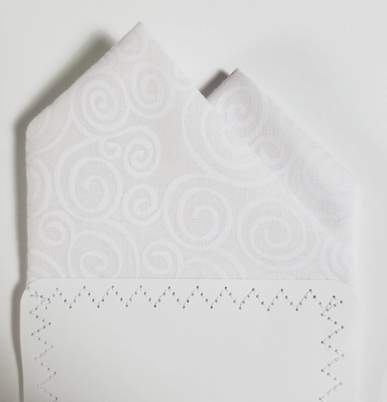 Dress up your suit or sport coat with a pre-folded pocket square. It’s easy to use and looks like a well placed pocket square. Just slip the insert into your breast pocket and adjust height to your taste. Trim bottom of card if you want less pocket square showing.