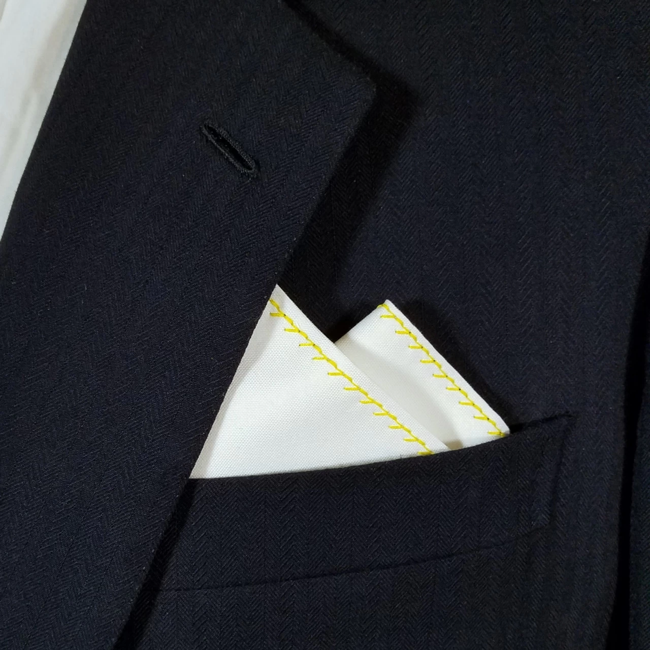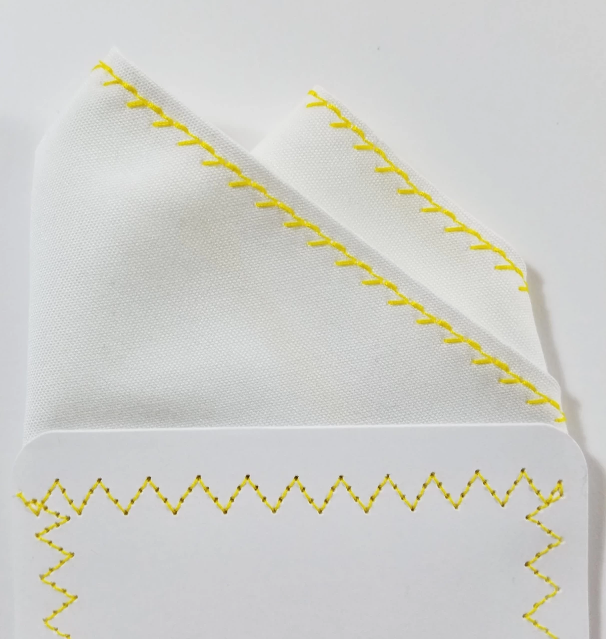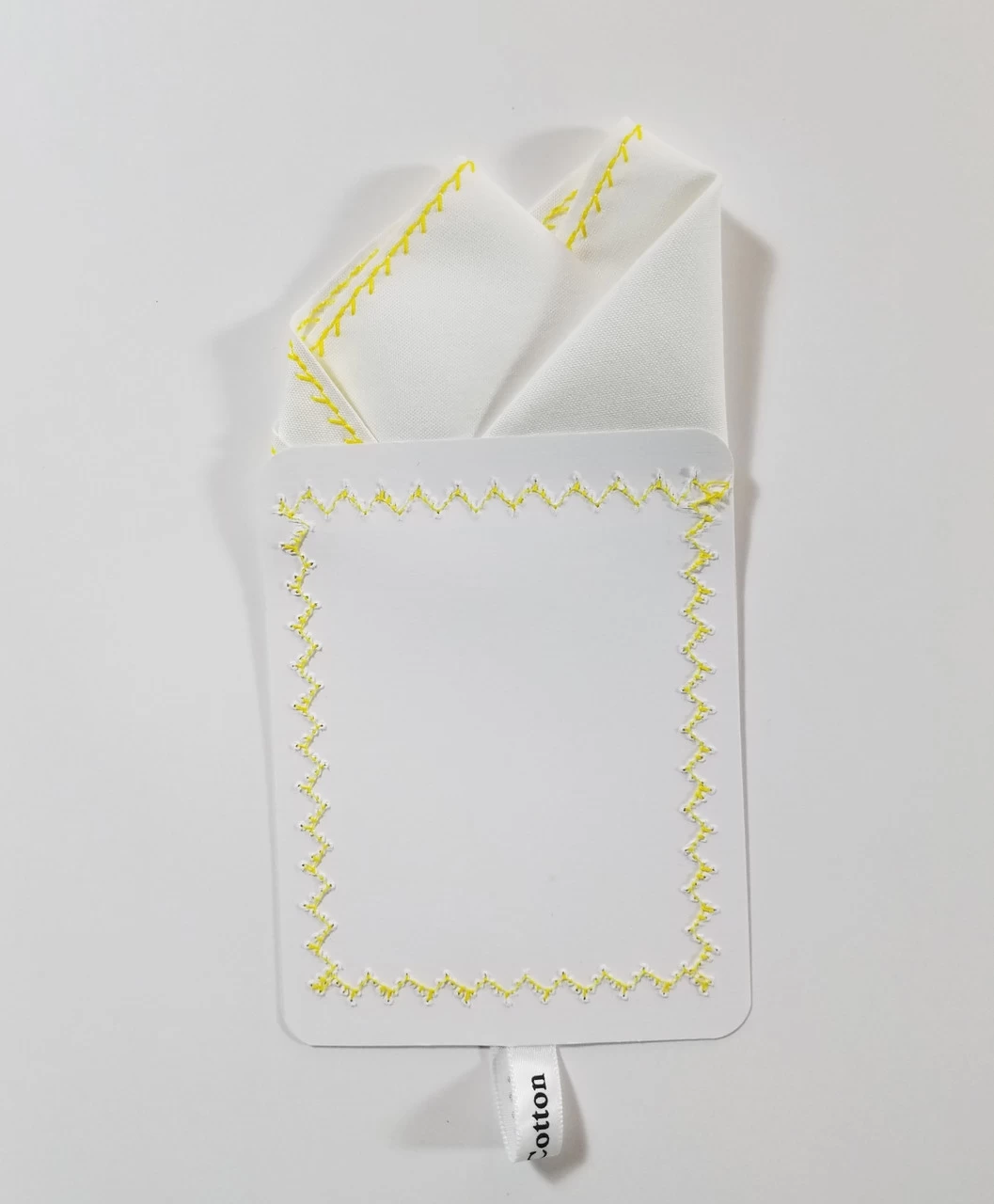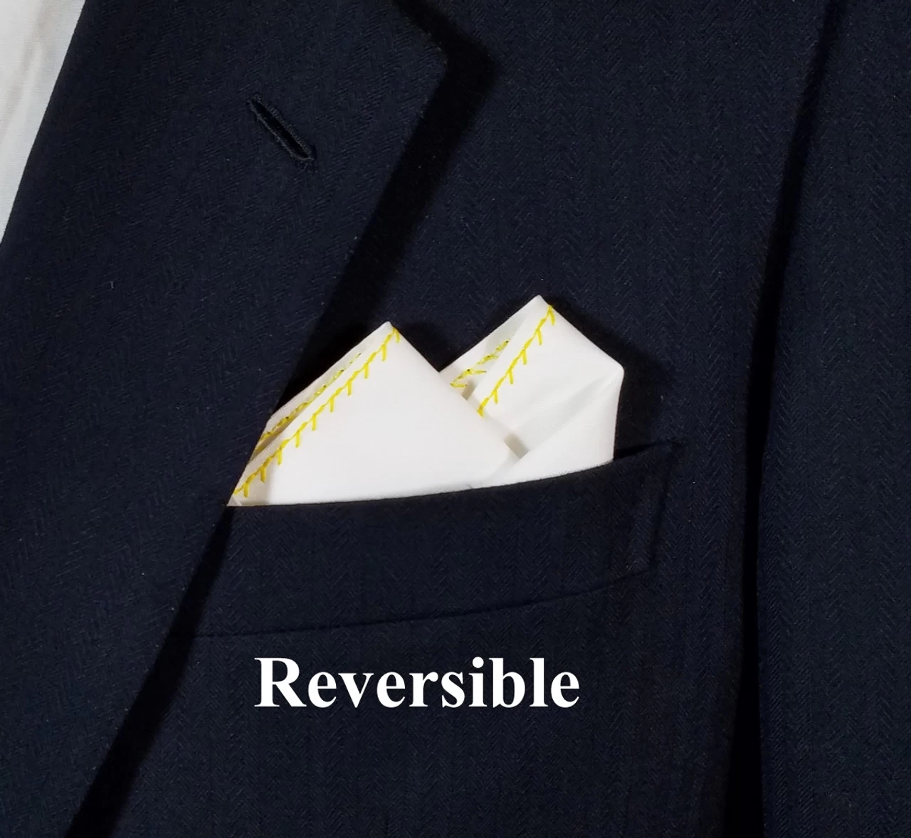 Dress up your suit or sport coat with a pre-folded pocket square. It’s easy to use and looks like a well placed pocket square. Just slip the insert into your breast pocket and adjust height to your taste. Trim bottom of card if you want less pocket square showing.