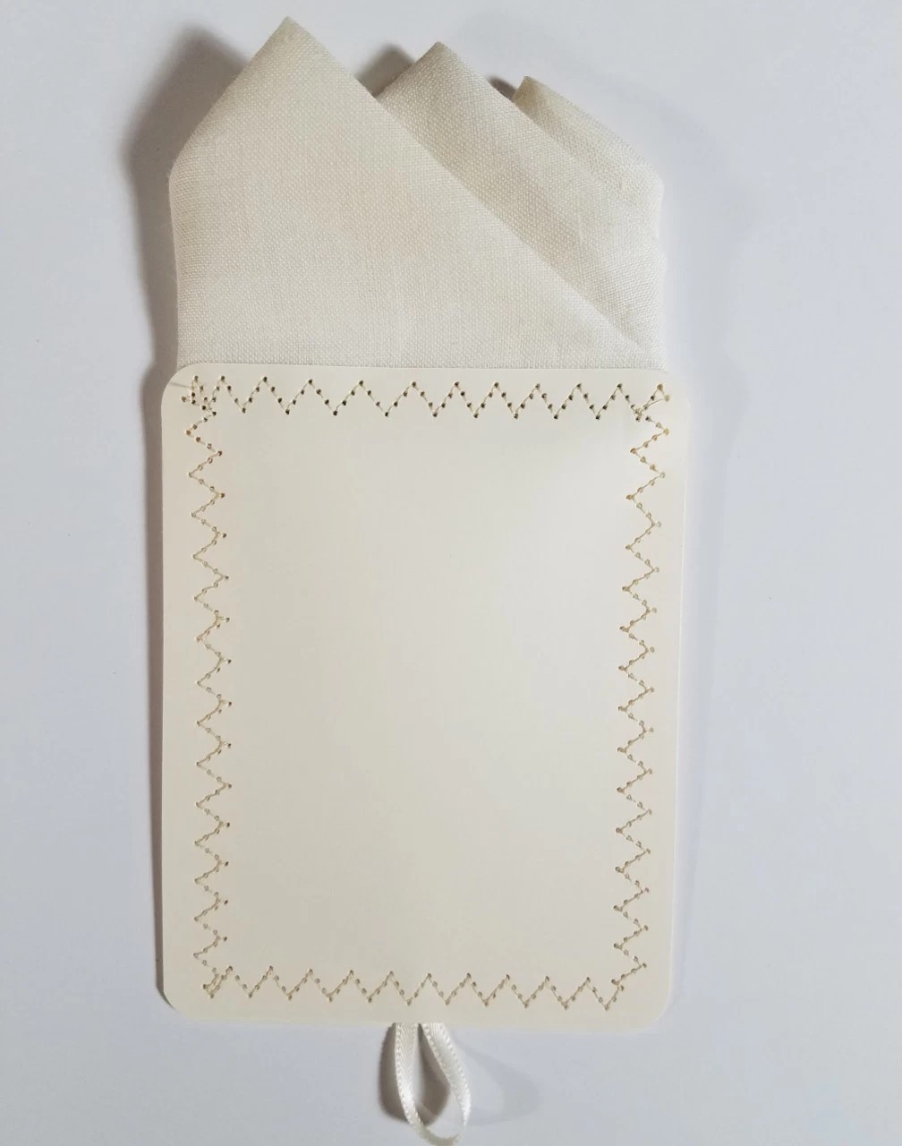 Dress up your suit or sport coat with a pre-folded pocket square. It’s easy to use and looks like a well placed pocket square. Just slip the insert into your breast pocket and adjust height to your taste. Trim bottom of card if you want less pocket square showing.