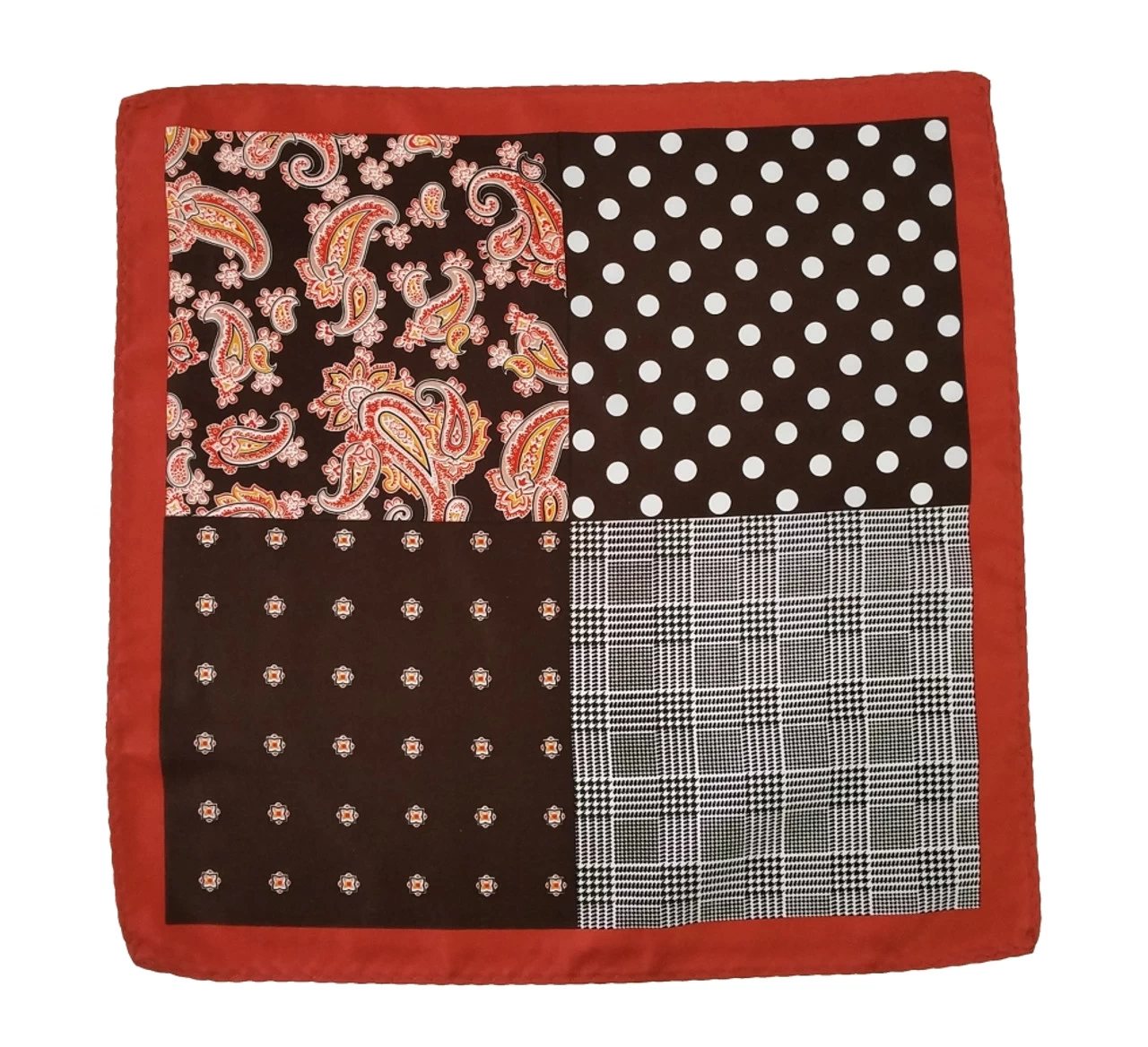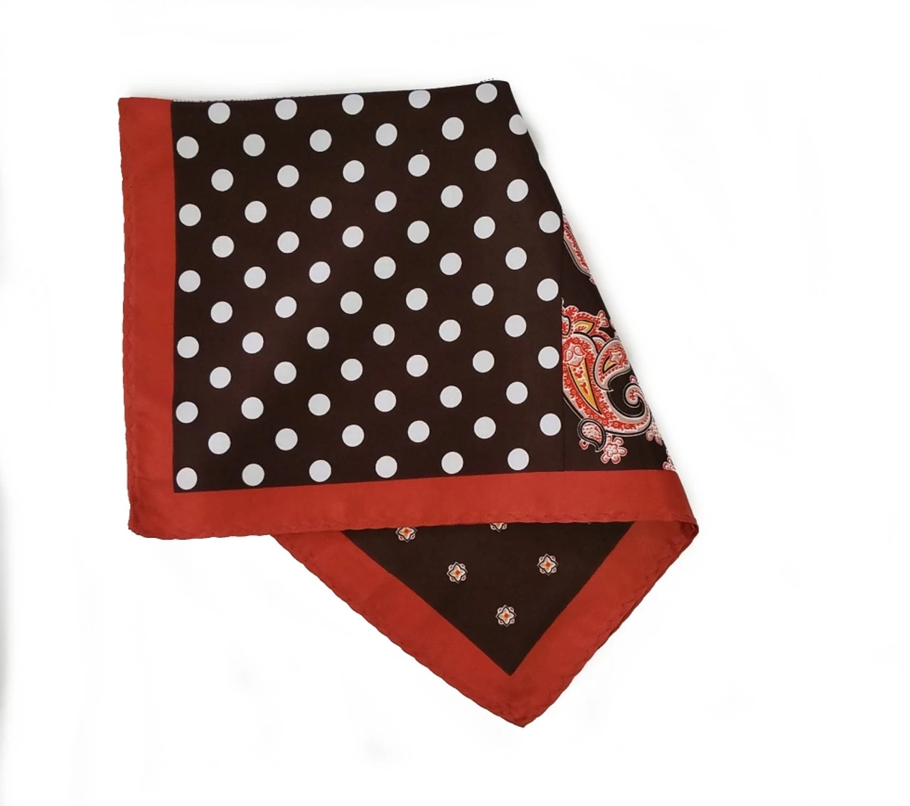 Be the first to review “100% Silk Pocket Square Brown Polka Dots With Copper Paisleys 12.5in” Cancel reply