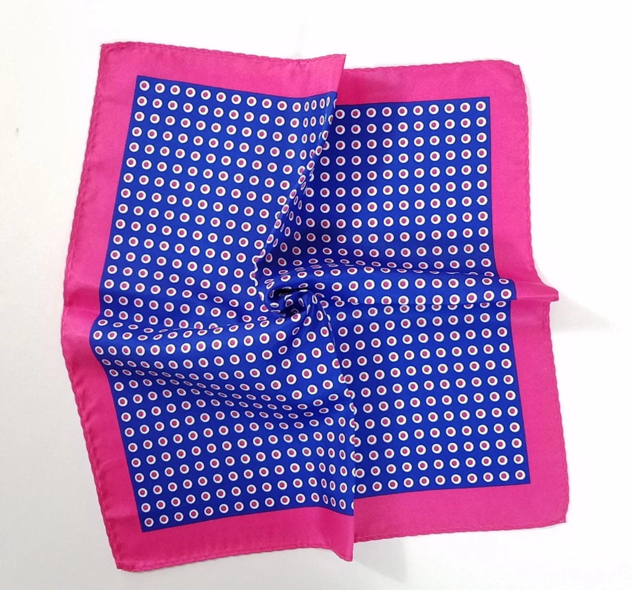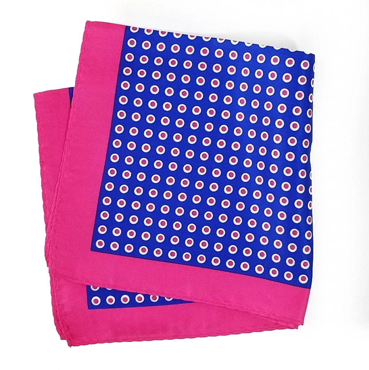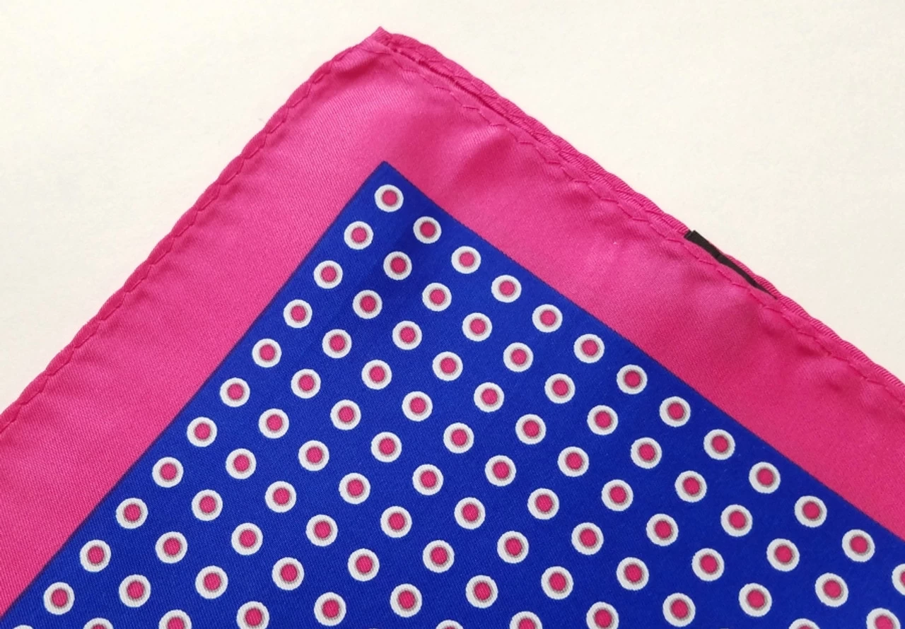Be the first to review “100% Silk Pocket Square – Royal Blue & Hot Pink Polka Dot 12.5in X 12.5in” Cancel reply