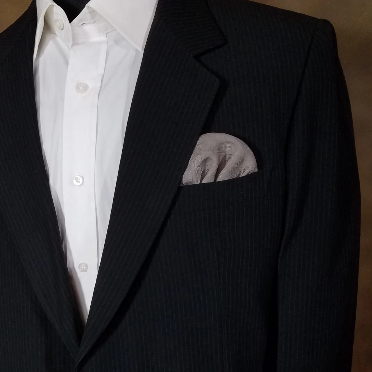 Dress up your suit, tux, blazer or sportcoat with a pre-folded pocket square. It’s easy to use and looks like a well placed full size pocket square. Just slip the insert into your breast pocket! You can also trim the bottom of the card to shorten the height of the pocket square showing.
