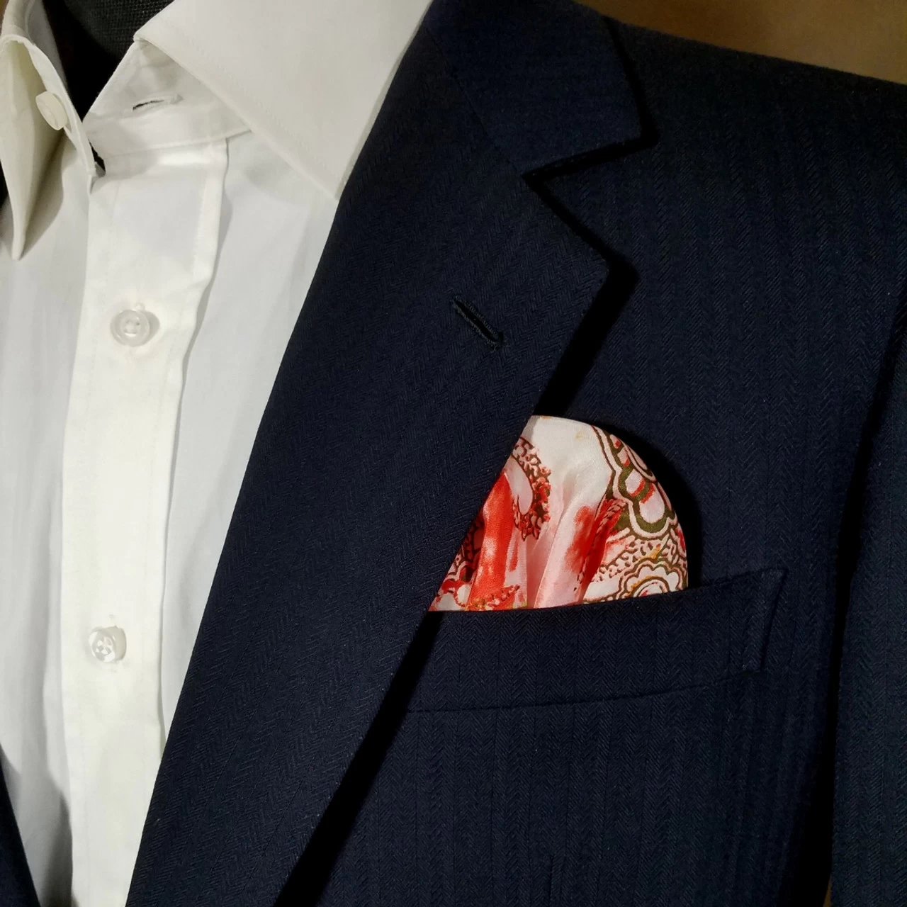 Dress up your suit, tux, blazer or sportcoat with a pre-folded pocket square. It’s easy to use and looks like a well placed pocket square. Just slip the insert into your breast pocket and cut or fold cardboard to adjust to the height size you want.