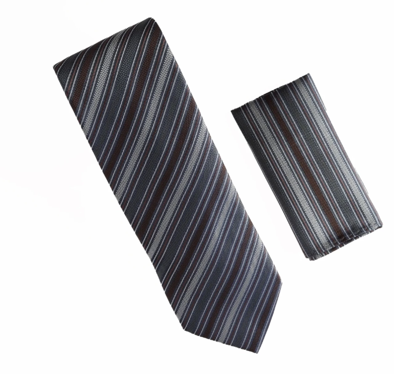 Be the first to review “Antonia 100% Silk Tie W/Pocket Square – Charcoal Grey & Brown Multi Stripes” Cancel reply