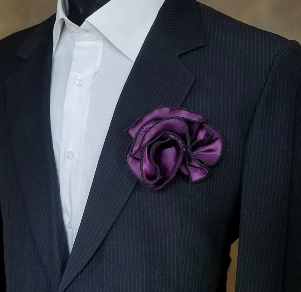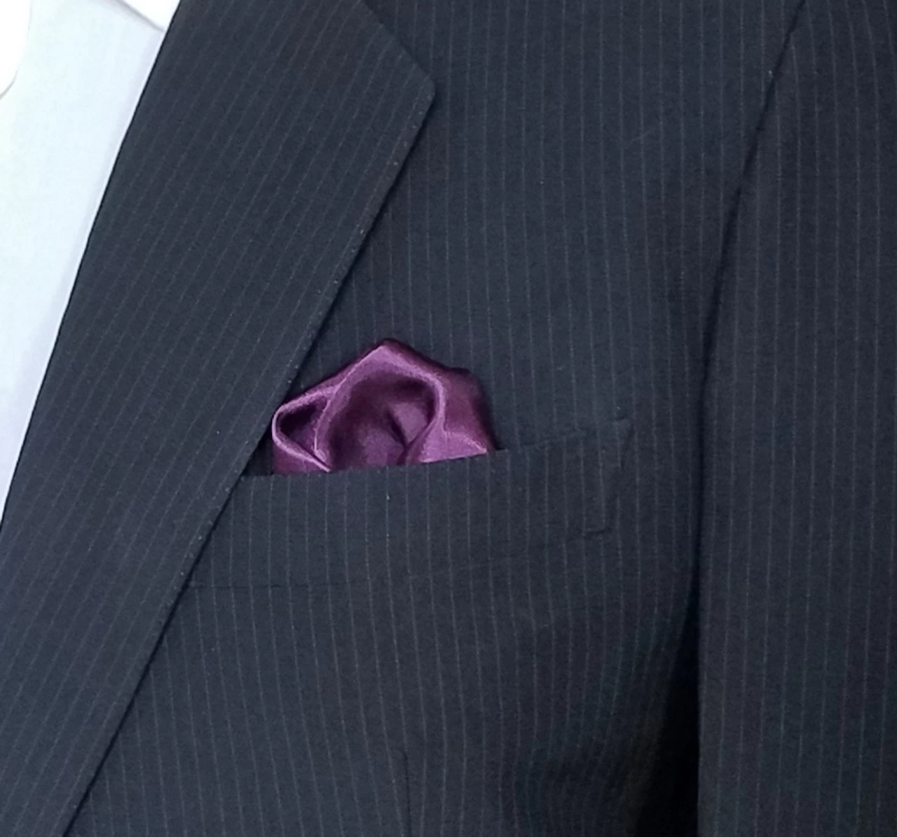 - Color(s): Dark Purple Pocket Square with Black Trim