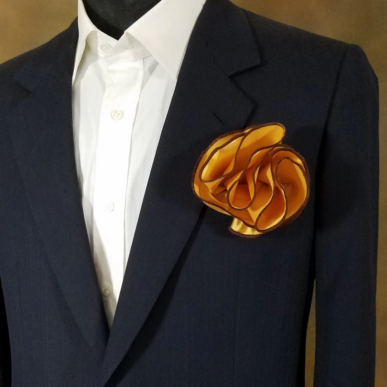 Be the first to review “Antonio Ricci 2-in-1 Pouf Round Pocket Square – Brown Trim On Rich Gold” Cancel reply