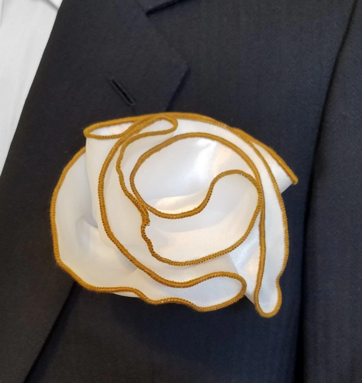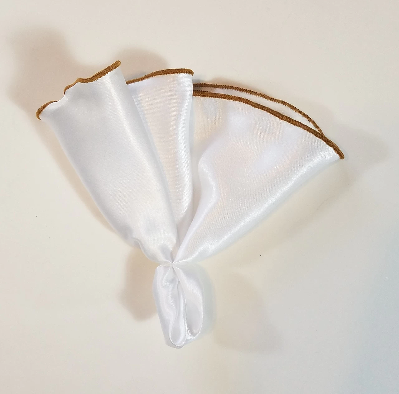 - Color(s): White Pocket Square Contrasted with Dark Tan Trim