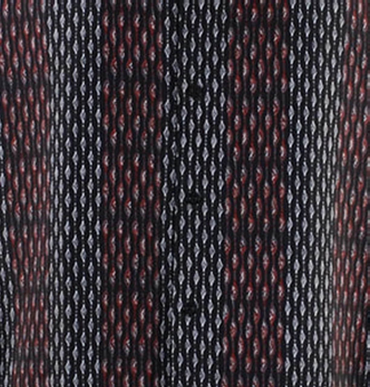 - Colors: Mix of Black and Burgundy Tones with Grey