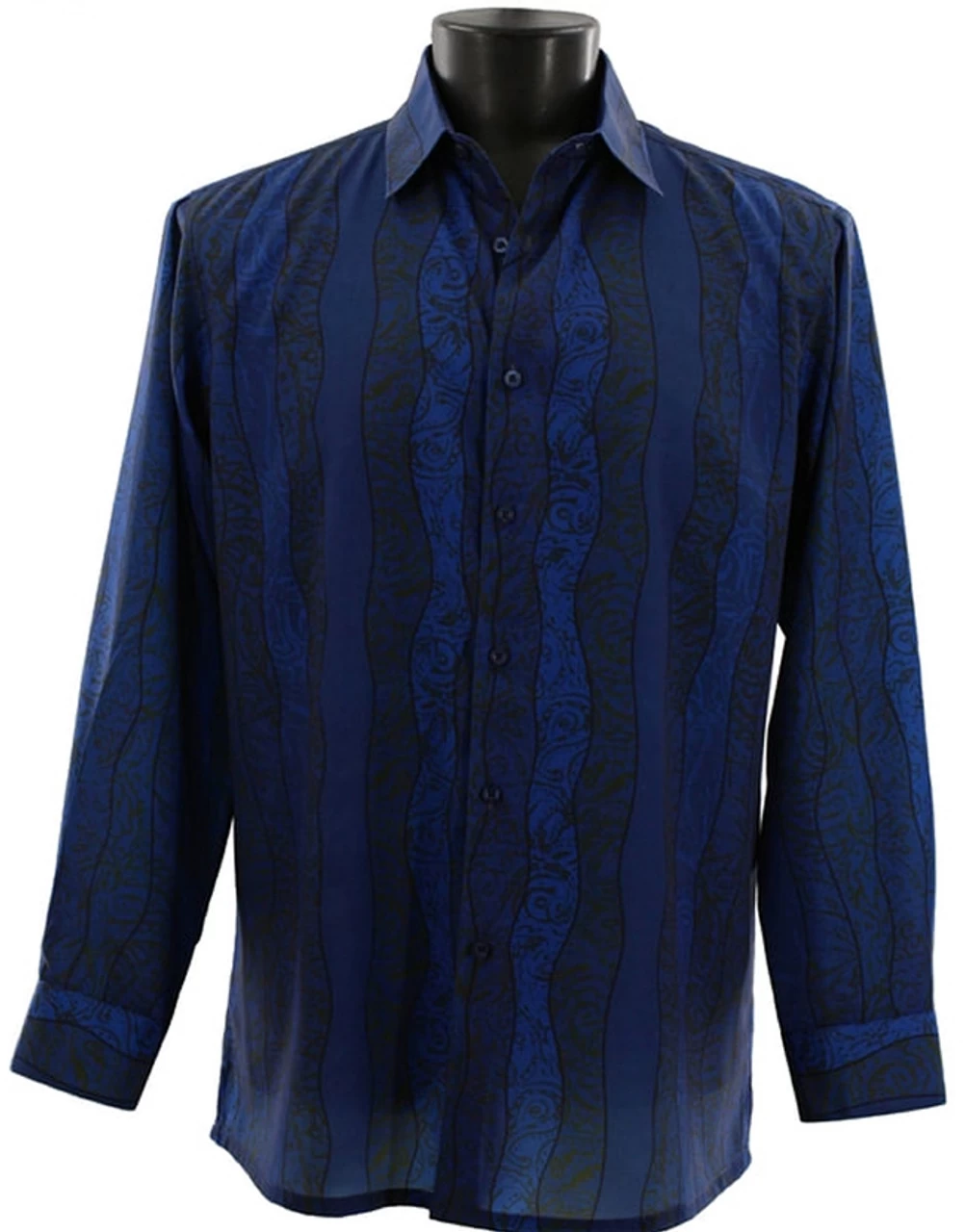 Be the first to review “Bassiri Dark Blue Wavy Line Mix Design Long Sleeve Camp Shirt” Cancel reply