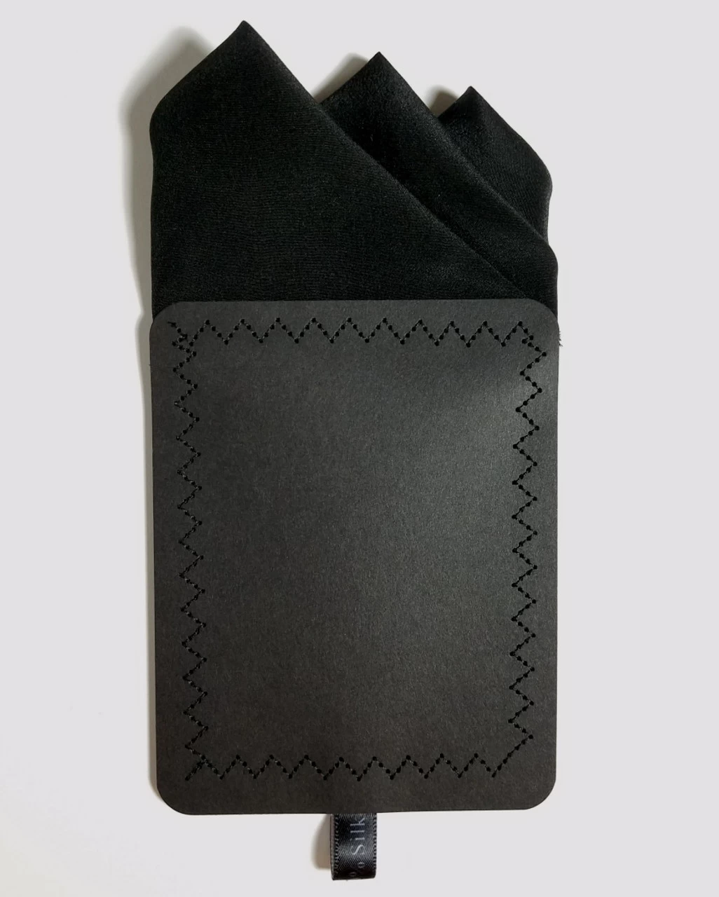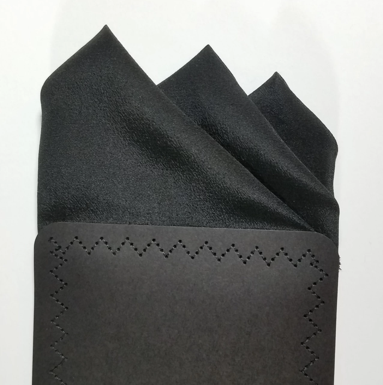 Dress up your suit or sport coat with a pre-folded pocket square. It’s easy to use and looks like a well placed pocket square. Just slip the insert into your breast pocket and adjust height to your taste. Trim bottom of card if you want less pocket square showing.