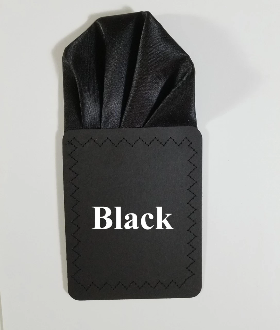 Dress up your tuxedo, suit or sportcoat with a pre-folded pocket square. It’s easy to use and looks like a well placed pocket square. Just slip the insert into your breast pocket and cut or fold cardboard to adjust to the height size you want.