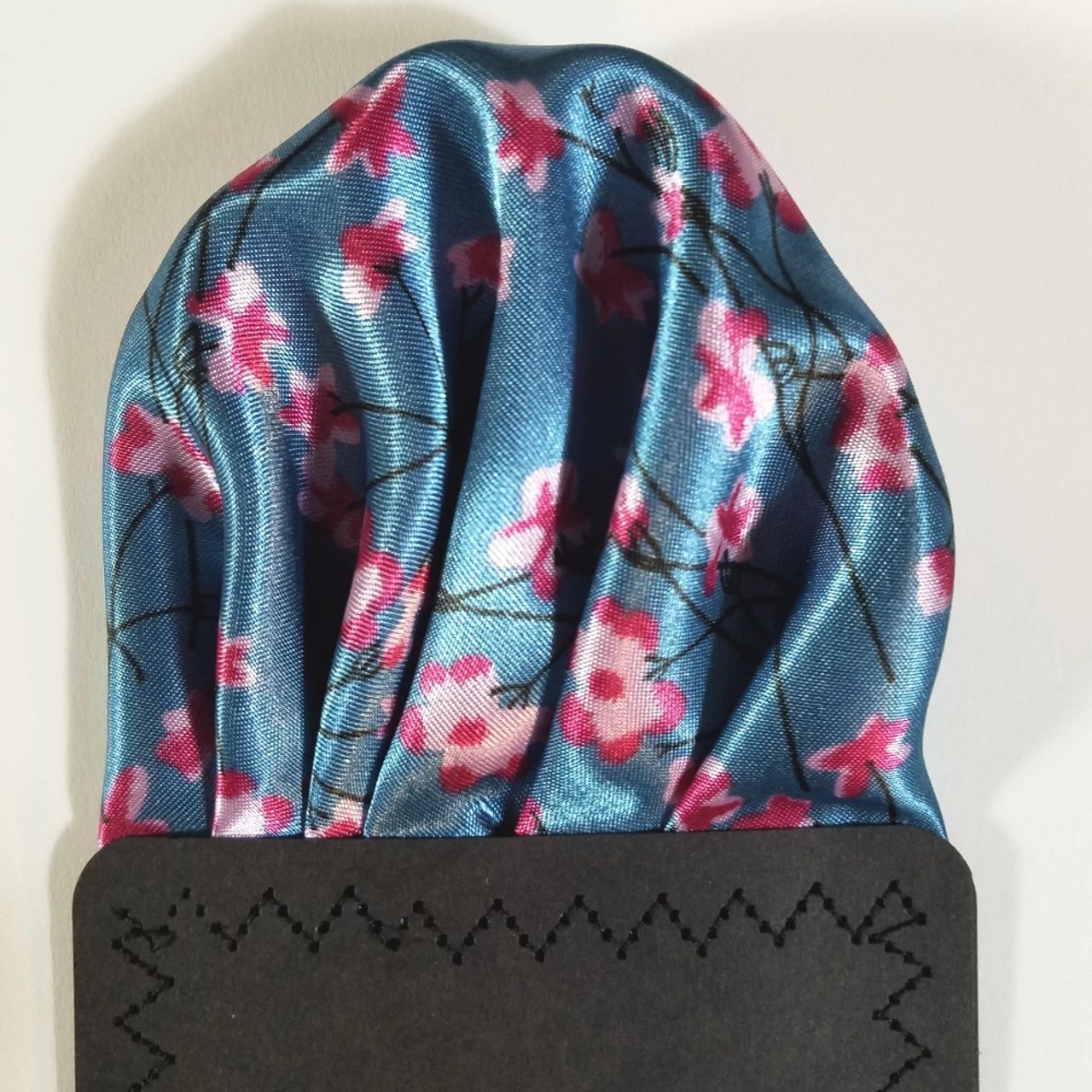 - Satin Blue Tone with Pink Flowers