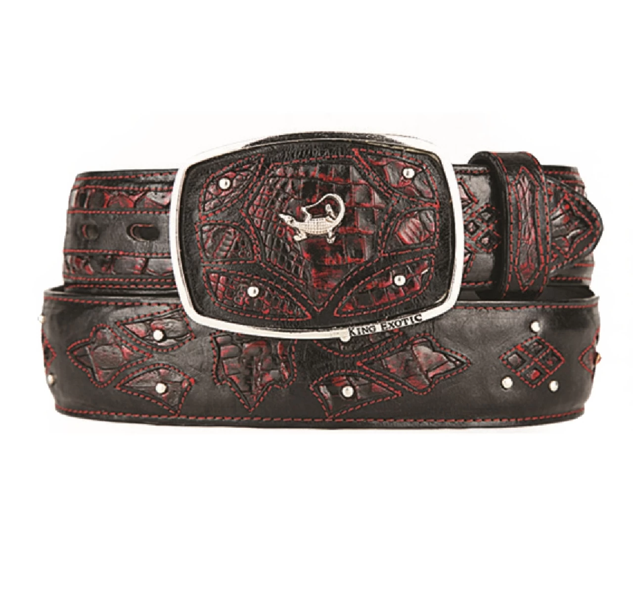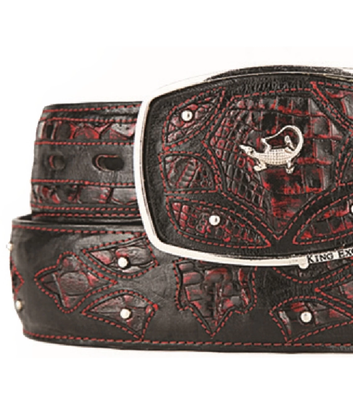 King Exotic Genuine EEL Cut-Out Design Western Belt – Faded Brown