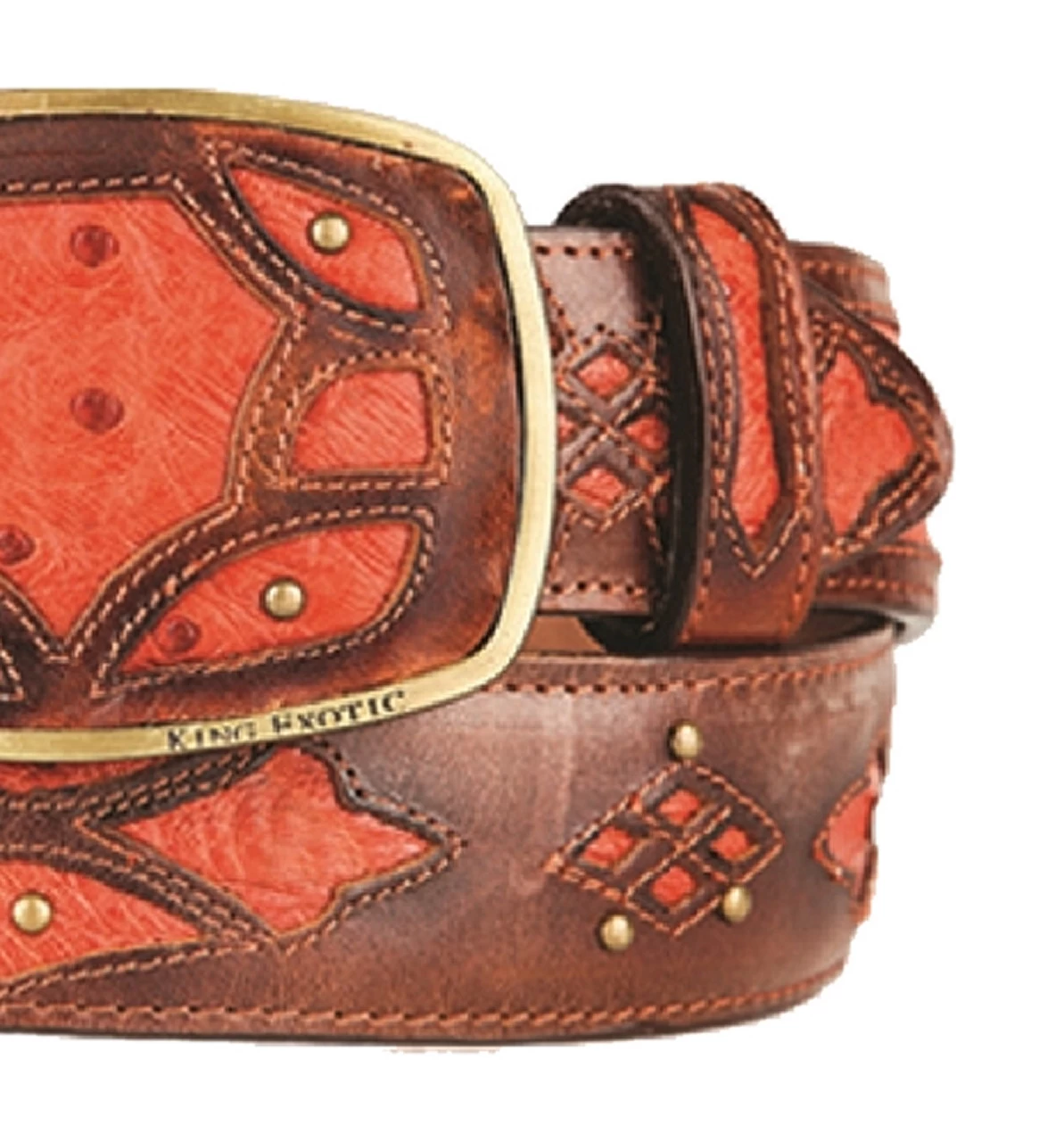 King Exotic Genuine EEL Cut-Out Design Western Belt – Faded Brown