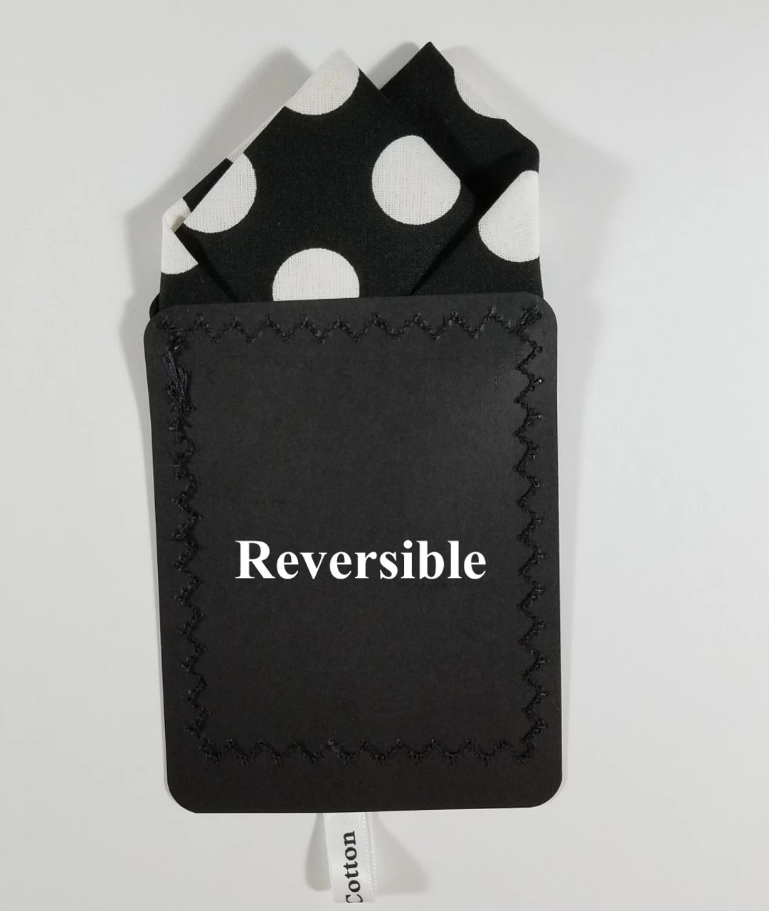 Dress up your suit or sport coat with a pre-folded pocket square. It’s easy to use and looks like a well placed pocket square. Just slip the insert into your breast pocket and adjust height to your taste. Trim bottom of card if you want less pocket square showing.