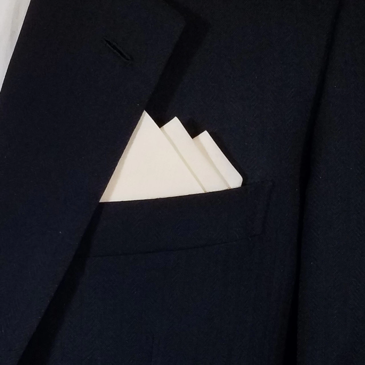 Dress up your suit or sport coat with a pre-folded pocket square. It’s easy to use and looks like a well placed pocket square. Just slip the insert into your breast pocket and adjust height to your taste. Trim bottom of card if you want less pocket square showing.