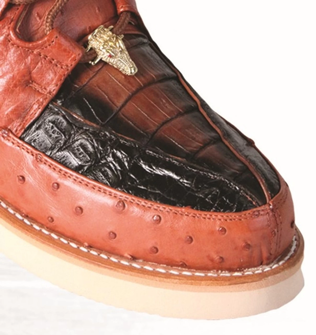 - Exterior: Genuine Caiman Croc and Ostrich Quill