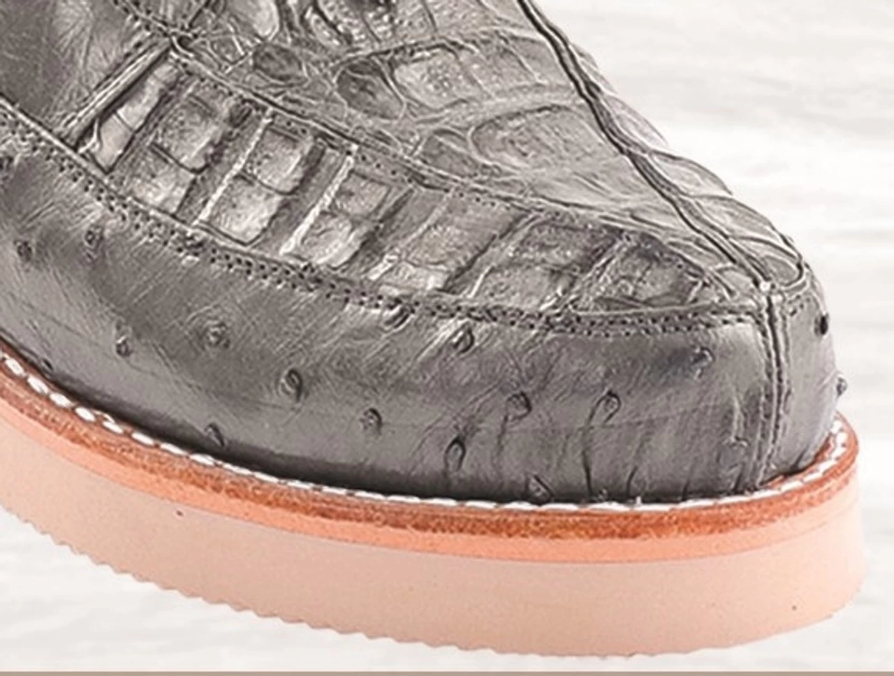 - Exterior: Genuine Caiman Croc and Ostrich Quill