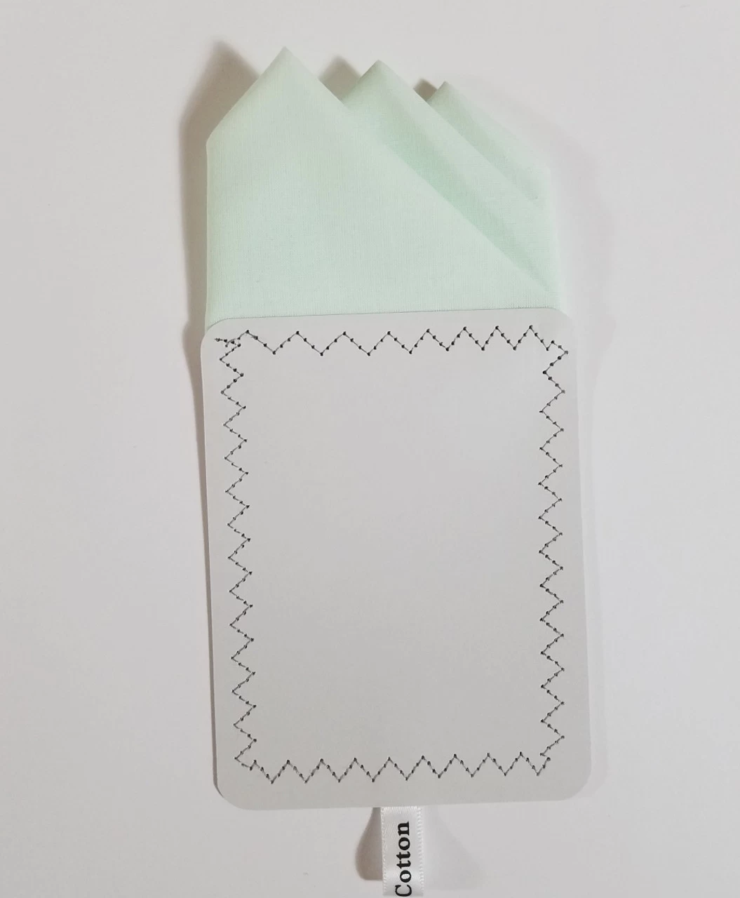 Dress up your suit or sport coat with a pre-folded pocket square. It’s easy to use and looks like a well placed pocket square. Just slip the insert into your breast pocket and adjust height to your taste. Trim bottom of card if you want less pocket square showing.