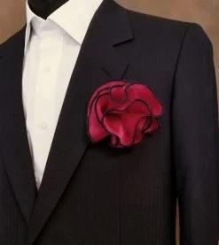 Antonio Ricci 2-in-1 Pouf Round Pocket Square – Red With White Swirl Pattern