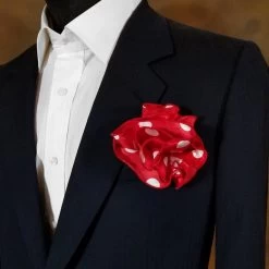 Antonio Ricci 2-in-1 Pouf Round Pocket Square – Red With White Polka Dots