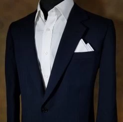 Blue Stitch On White 100% Cotton Pre-Folded Pocket Square Handkerchief Insert