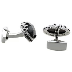 Faceted Black Onyx With Crystals Dome Cufflinks (V-CF-G53091)