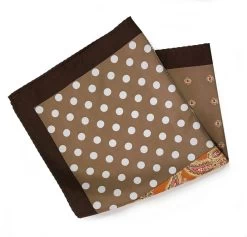 100% Silk Pocket Square Brown Polka Dots With Copper Paisleys 12.5in