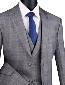 Vinci 2-Button Grey Glenplaid Suit With DB-Vest – Modern Fit