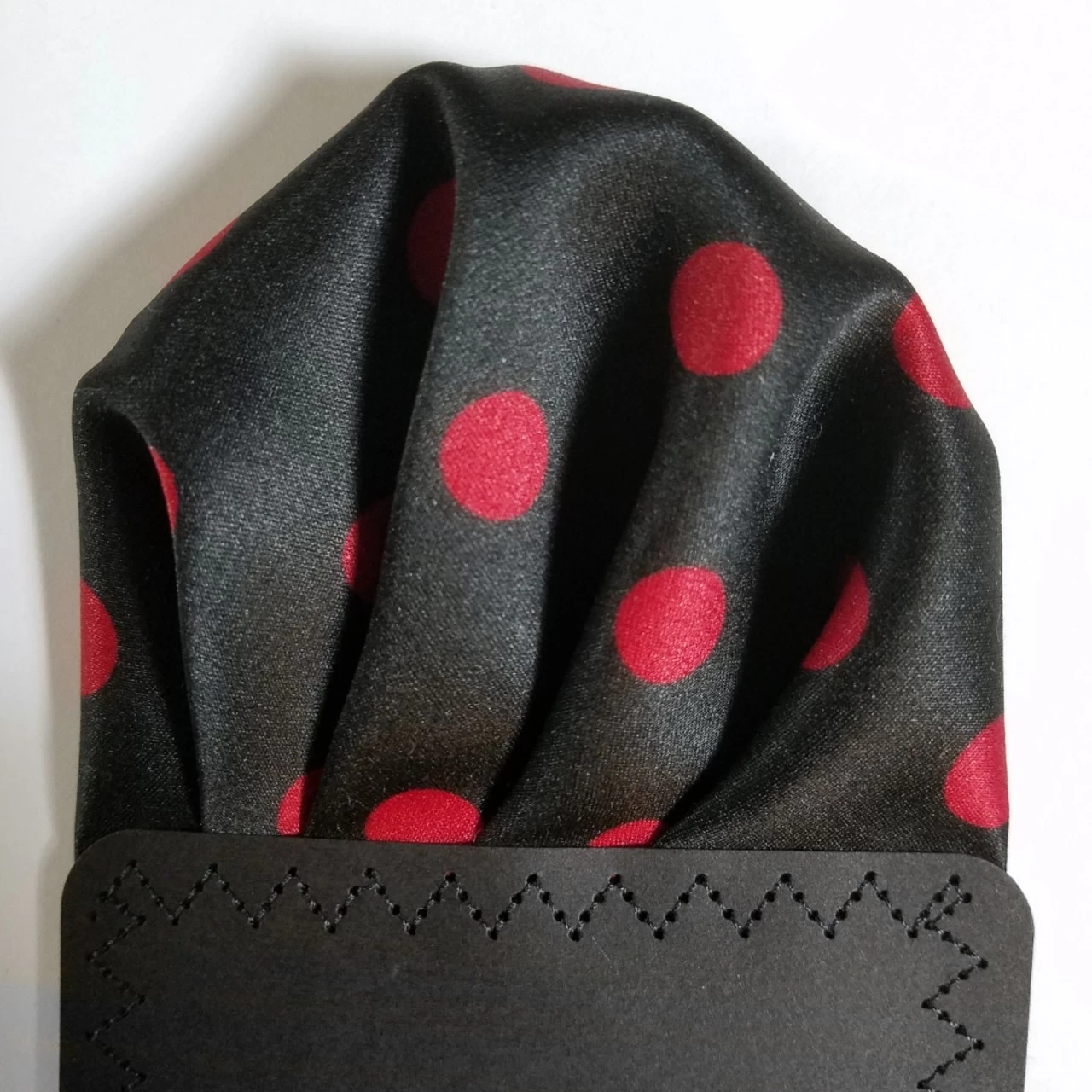 Dress up your suit, tux, blazer or sportcoat with a pre-folded pocket square. It’s easy to use and looks like a well placed pocket square. Just slip the insert into your breast pocket.
