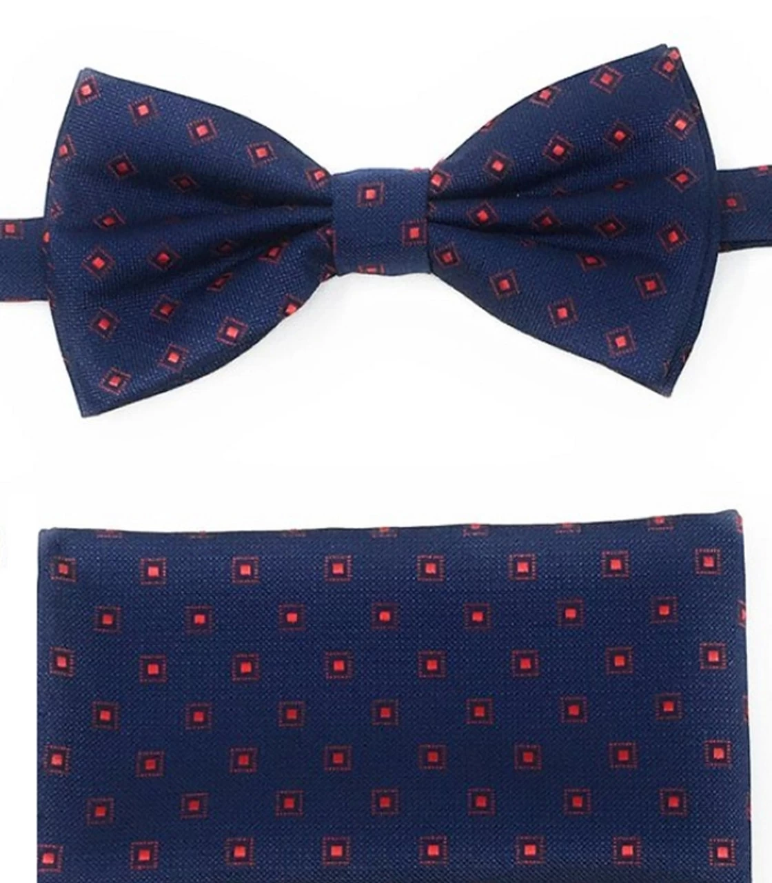 Be the first to review “Red Squares On Navy Pre-Tied Silk Bow Tie Set” Cancel reply