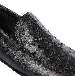 Lombardy – Genuine Ostrich Quill & Leather Loafer – Black