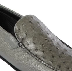 Lombardy – Genuine Ostrich Quill & Leather Loafer – Grey