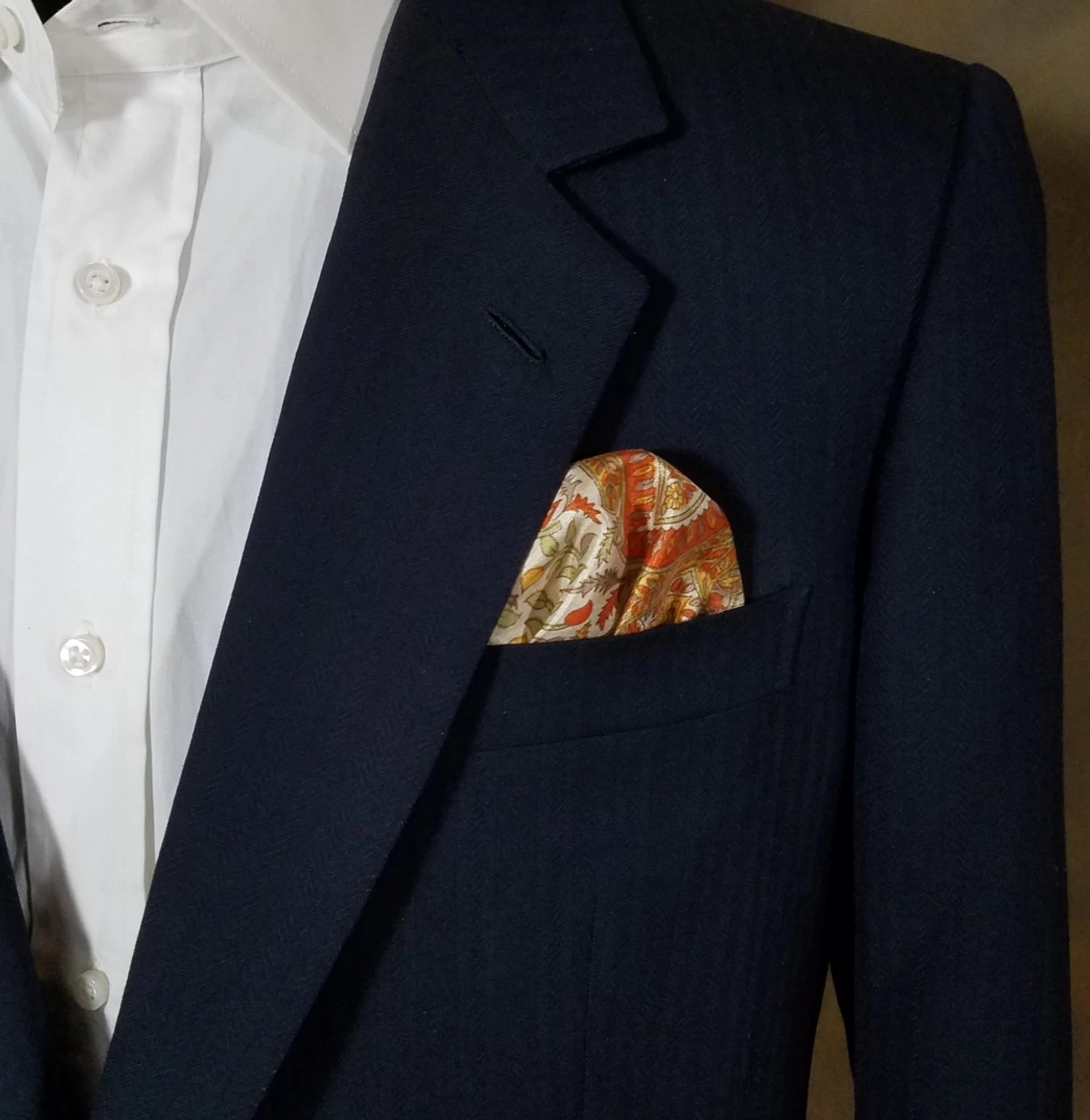 Dress up your suit, tux, blazer or sportcoat with a pre-folded pocket square. It’s easy to use and looks like a well placed full size pocket square. Just slip the insert into your breast pocket! You can also trim the bottom of the card to shorten the height of the pocket square showing.