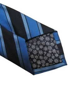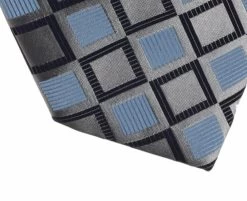 Antonia 100% Silk Tie W/Pocket Square – Dark Grey With Blue Box Design