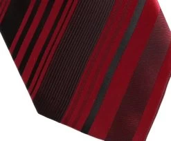 Antonia 100% Silk Tie W/Pocket Square – Dark Red Multi Stripes