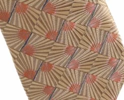 Antonia 100% Silk Tie W/Pocket Square – Tan & Copper Tone With Abstract Fan Design