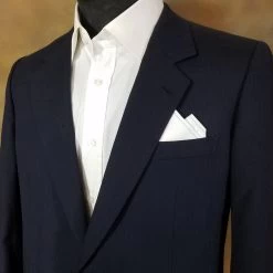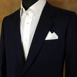 100% Cotton Pre-Folded Pocket Square Handkerchief Insert – Dark Blue On White