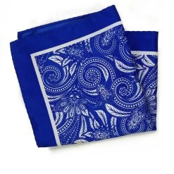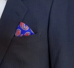 100% Silk Pocket Square – Royal Blue With Big Red Paisleys 12.5 X 12.5