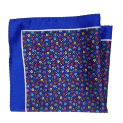 100% Silk Pocket Square – Royal Blue With Petite Multi-Colored Flowers 12.5in