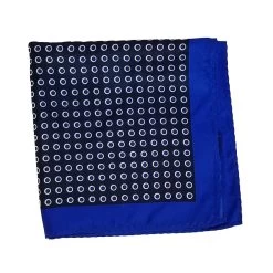 100% Silk Pocket Square – Royal Blue With Navy & White Polka Dots 12.5in