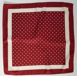 100% Silk Pocket Square – Ruby Red & White Dots & Fleur De Lis 12.5in