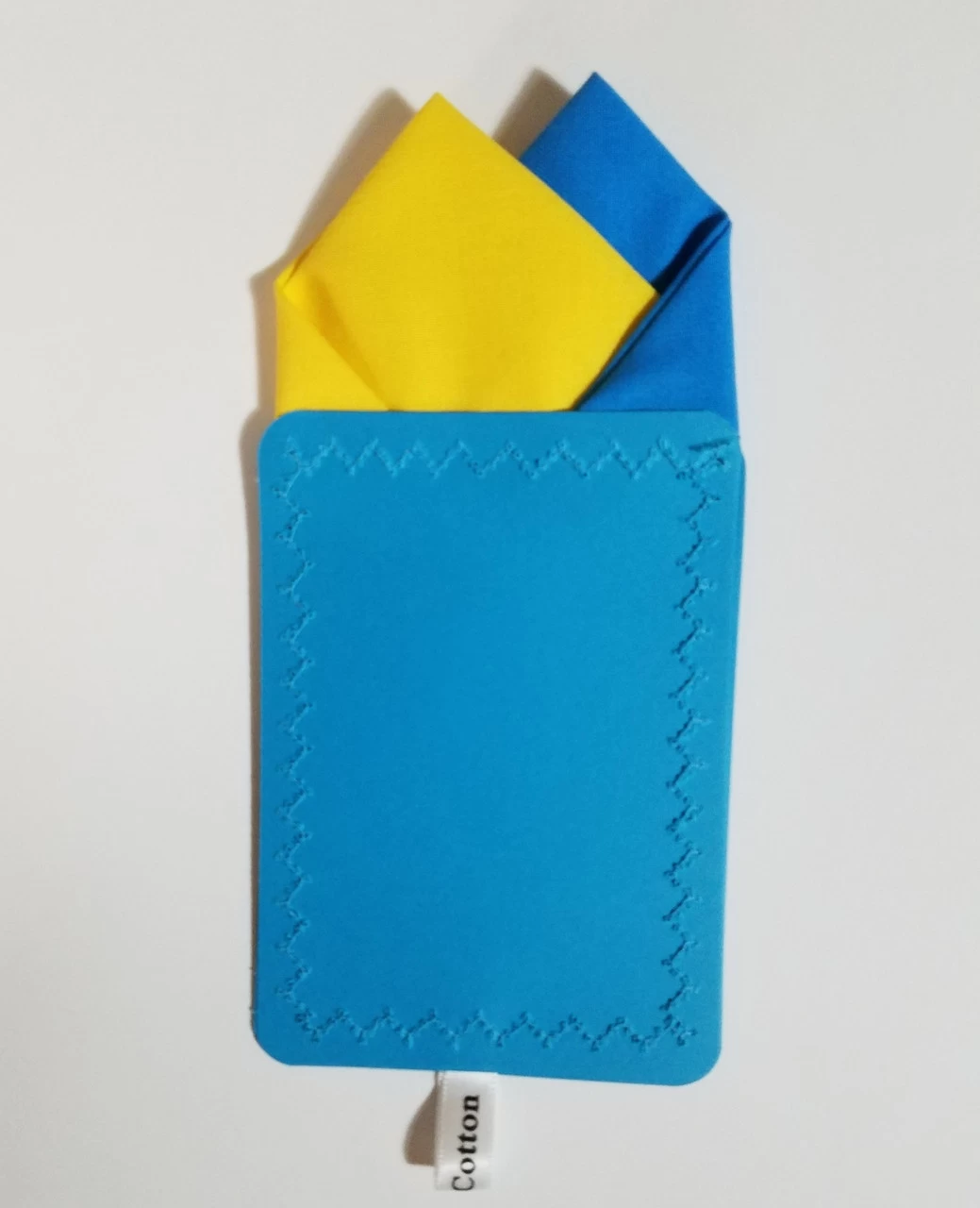 Show your support for Ukraine with a pocket square in the Ukrainian flag color. 50% of proceeds go to charity. Just slip the insert into your breast pocket. It can be reversed for a different looking fold.