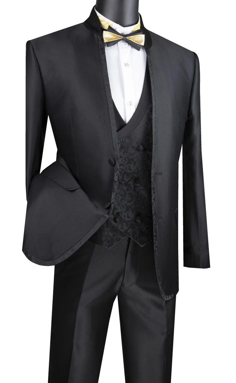Be the first to review “Vinci 3 Piece Collar-less Floral Pattern Vested Fancy Suit – Black” Cancel reply