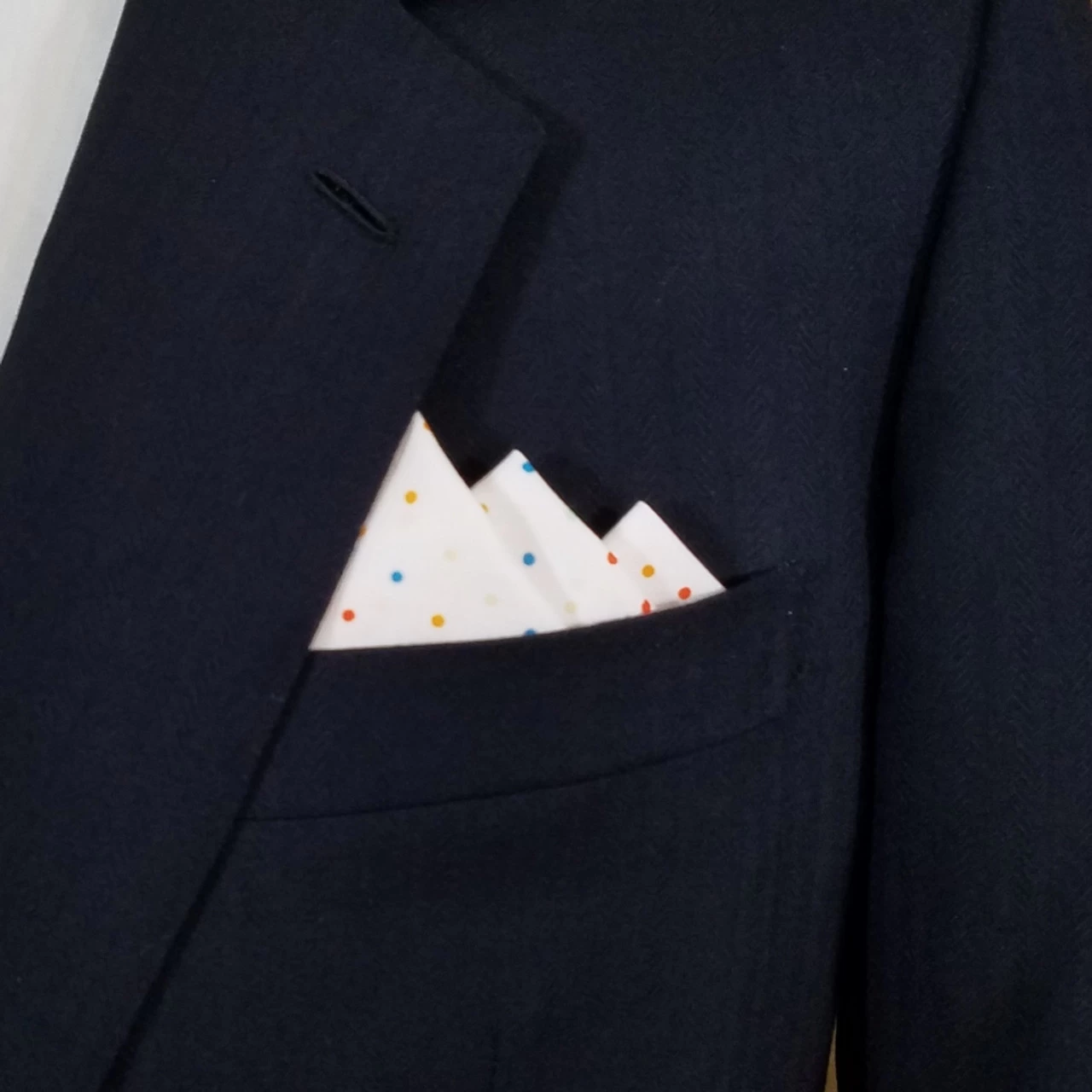 Dress up your suit or sport coat with a pre-folded pocket square. It’s easy to use and looks like a well placed pocket square. Just slip the insert into your breast pocket and adjust height to your taste. Trim bottom of card if you want less pocket square showing.
